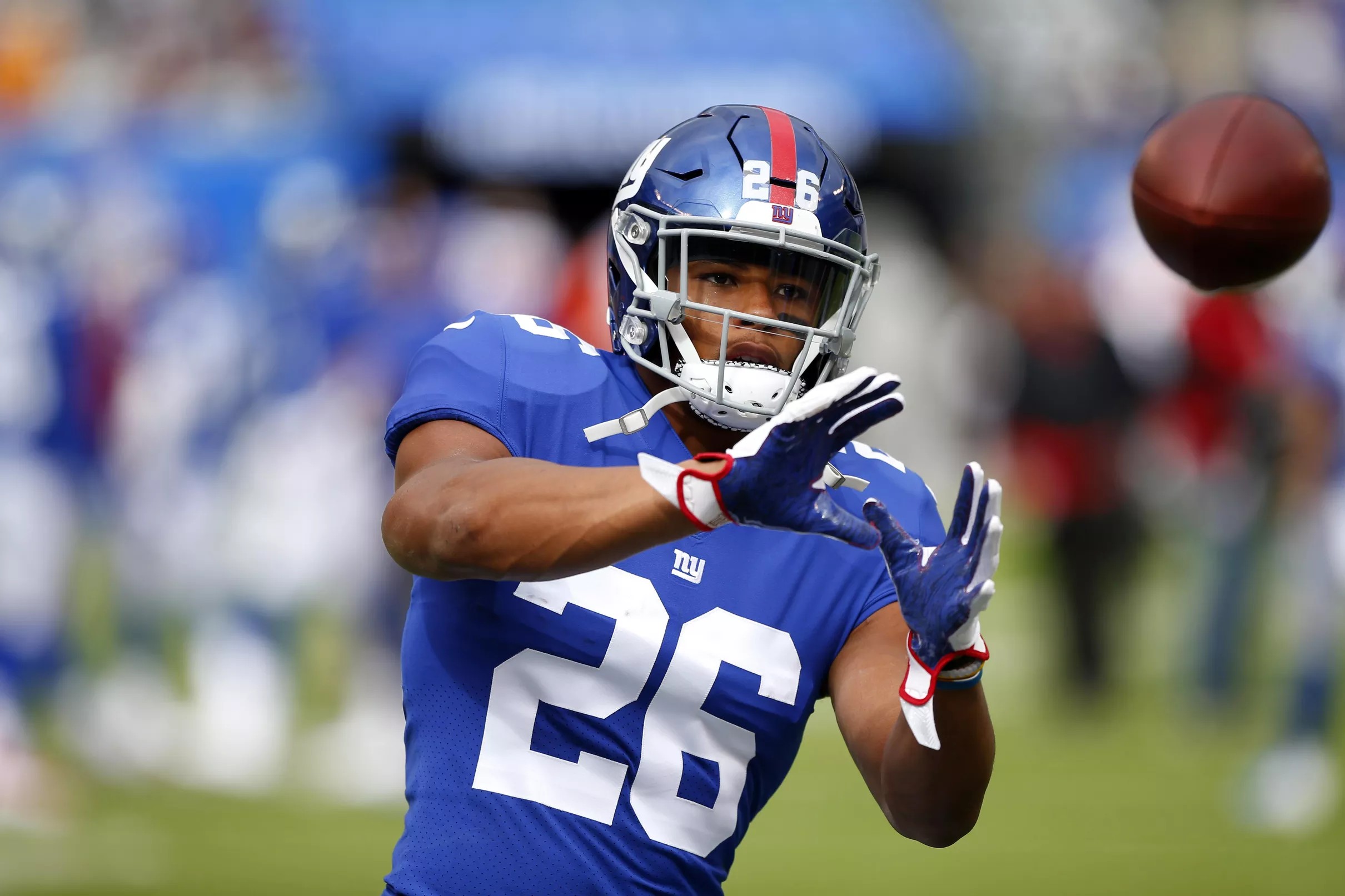 New york giants running back saquon barkley (26) runs the ball into the end zone for a touchdown against the miami dolphins during the third quarter new york giants running back saquon barkley (26) celebrates with teammates after scoring a touchdown in the second half of an nfl football game. How do saquon barkley's measurables compare to other running backs? Saquon barkley, né le 9 février 1997 à new york, est un joueur professionnel américain de football américain évoluant à la position de running back. Barkley's blessings are numerous, and football fans are well familiar with most of them. (mark fischer/new york daily news.) barkley may even see the hundreds of notifications.